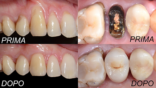 Otturazioni semplici o ricostruzioni complesse o intarsi sempre eseguiti con diga di gomma.